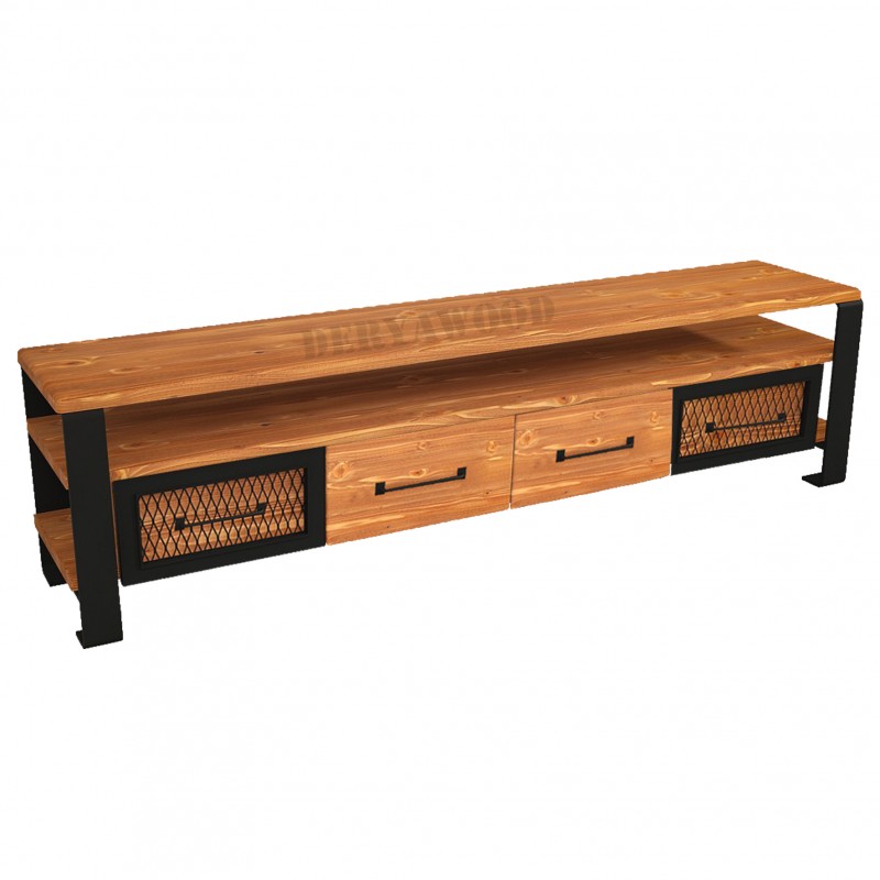 Bu doğal ahşap TV ünitesi, modern, loft ve rustik dekorasyon stillerine uyum sağlayacak şekilde tasarlanmıştır. Üründe kullanılan 1. sınıf fırınlanmış köknar ağacı, uzun ömürlü ve dayanıklı bir kullanım sunar.