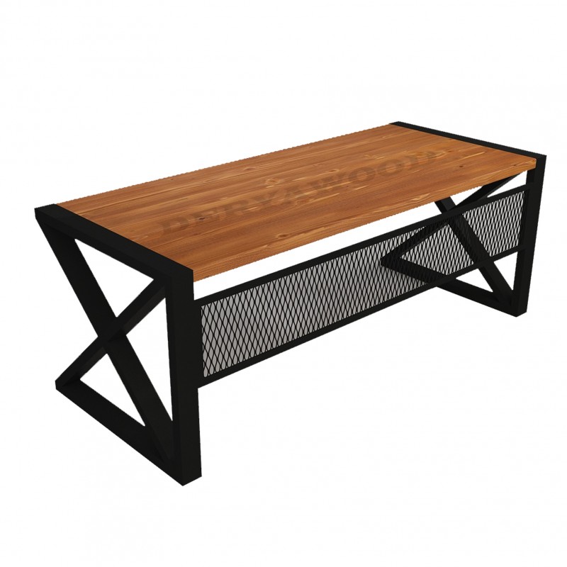 Leva Masif Ahşap Ofis Masası-ön modül tel ızgara